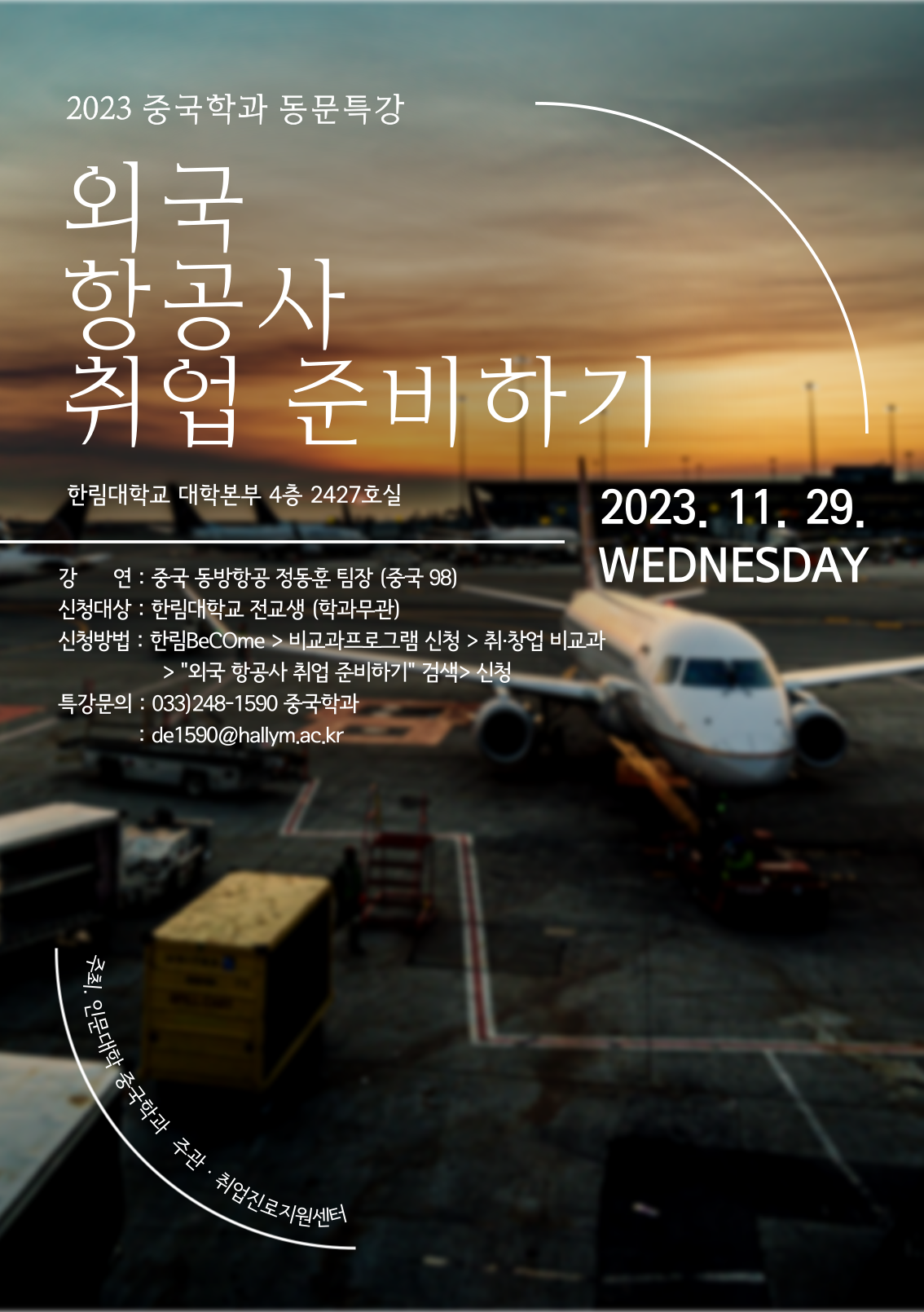 2023학년도 동문특강 "외국 항공사 취업 준비하기"-중국동방항공 여객서비스 총괄팀장 정동훈, 중국 98)