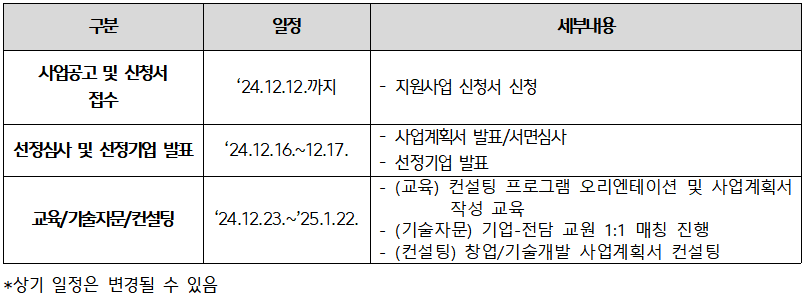 ○ 사업기간: 2024. 11. ~ 2025. 2.