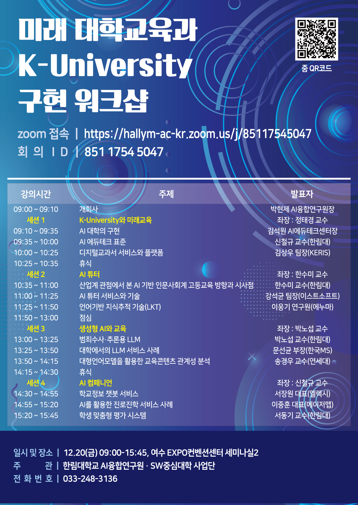 ■ 줌 주소: https://hallym-ac-kr.zoom.us/j/85117545047 (포스터 내 줌 QR코드 참고)