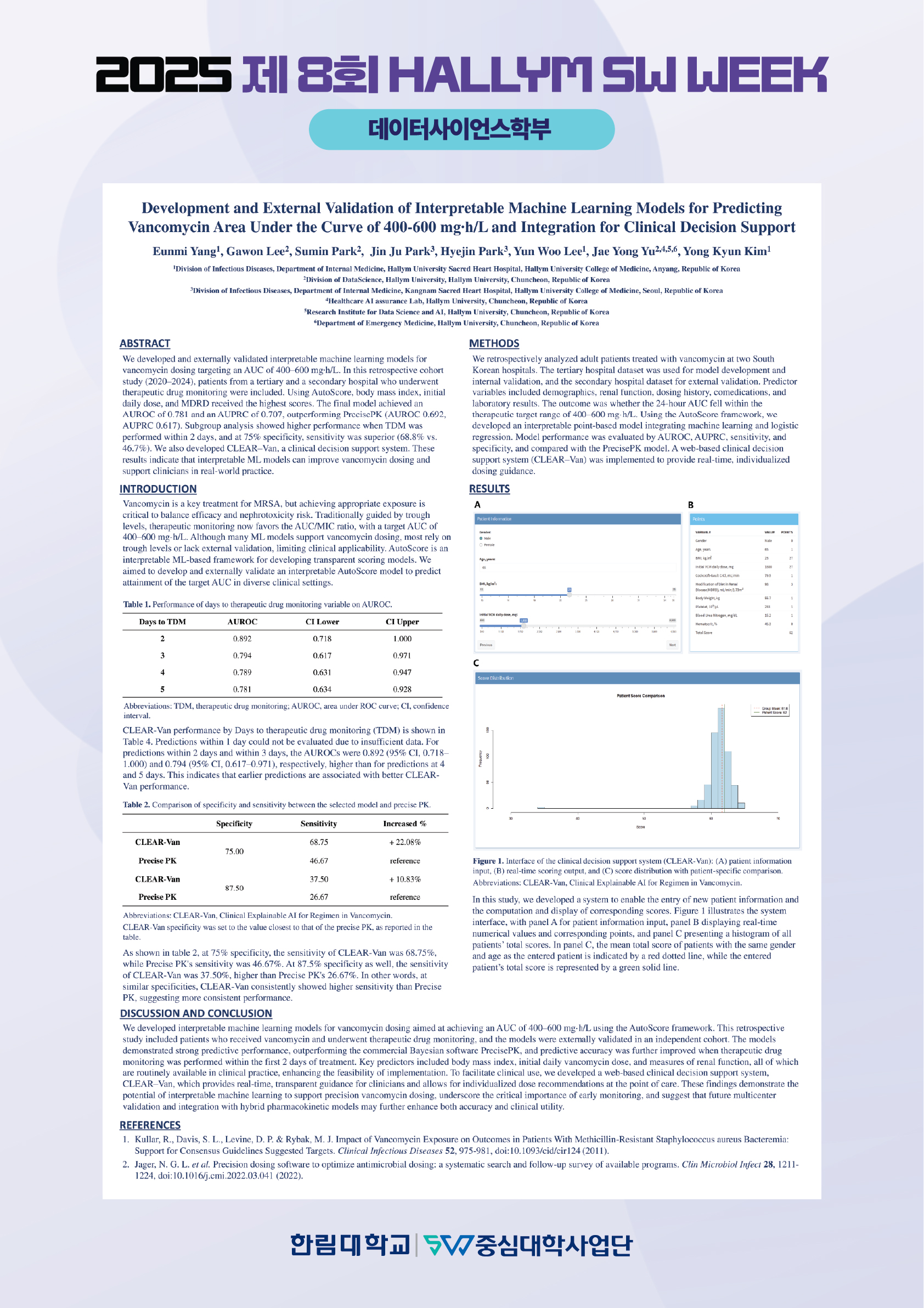 작품명: Development and External Validation of Interpretable Machine Learning Models for Predicting Vancomycin Area Under the Curve of 400-600 mg∙h/L and Integration for Clinical Decision Support