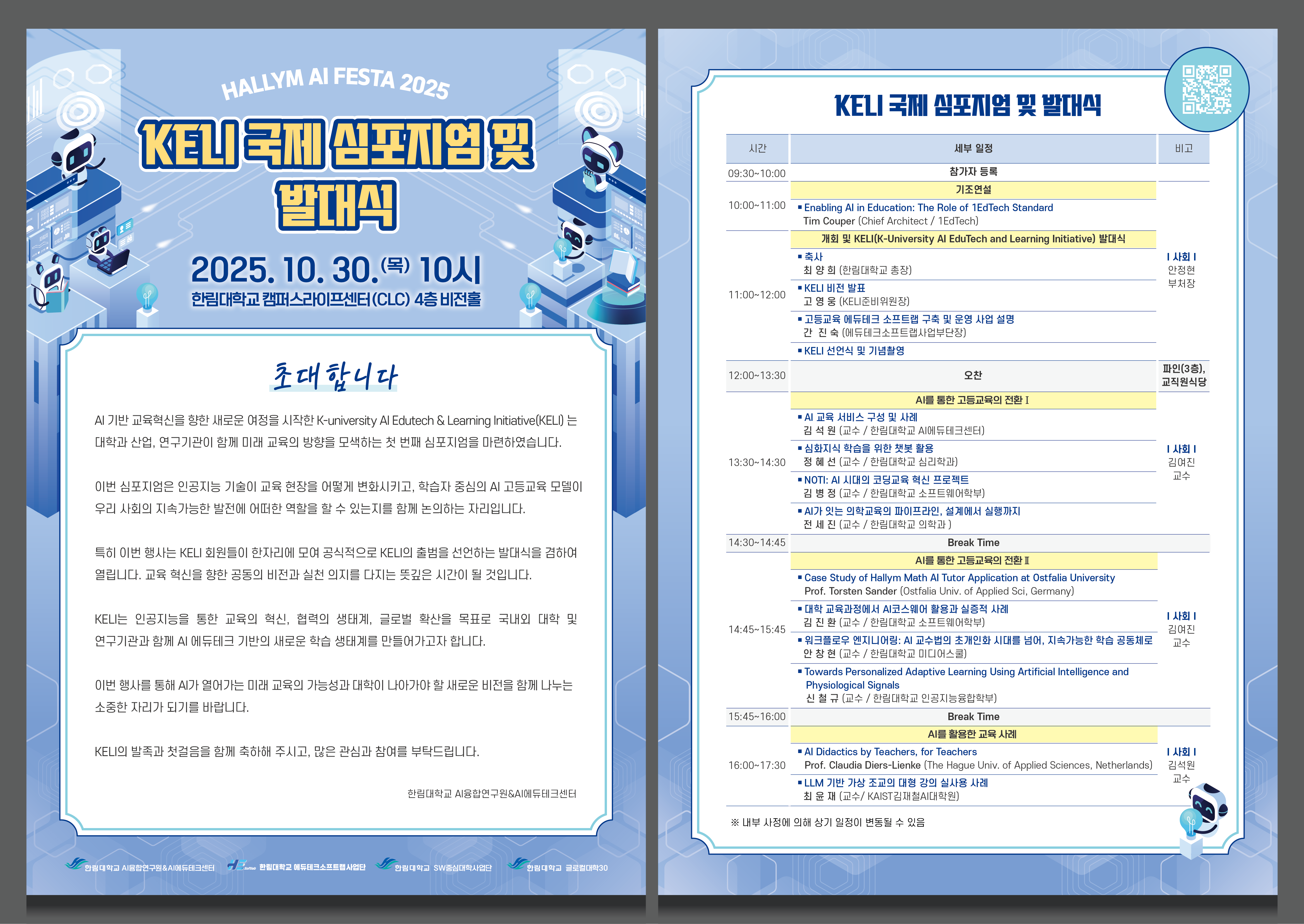 또한, AI 기술 발전에 발맞춰 미래 교육을 선도할 K-University 모델을 창출하고, 지속 가능한 AI 기반 고등교육 생태계 구축을 위해 설립된 개방형 협력 플랫폼인 KELI((K-University AI Edutech and Learning Initiative)의 공식 출범을 선언하는 발대식도 함께 진행될 예정입니다.