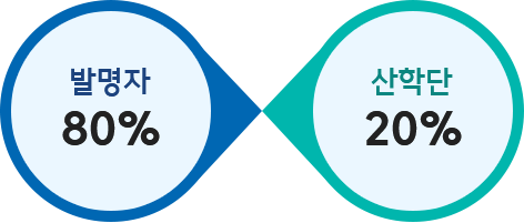 - 기술료에서 특허 관련 비용을 선 공제한 후, 나머지 금액에 대해 80:20 비율로 지급